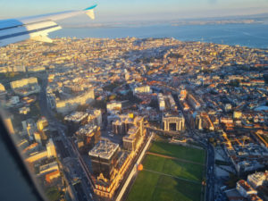 Das bietet aber auch den Reiz, dass man bei Landung und Start bei gutem Wetter schon eine Stadtbesichtigung mitgeliefert bekommt.