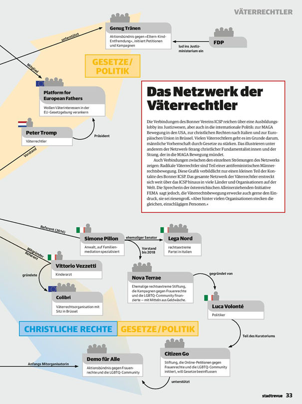 „Katarina Machmer hat sich die Verbindungen angeschaut – und eine Männerrechtsbewegung entdeckt, die Justiz und Politik beeinflussen will. In Teilen ist das bereits gelungen.“